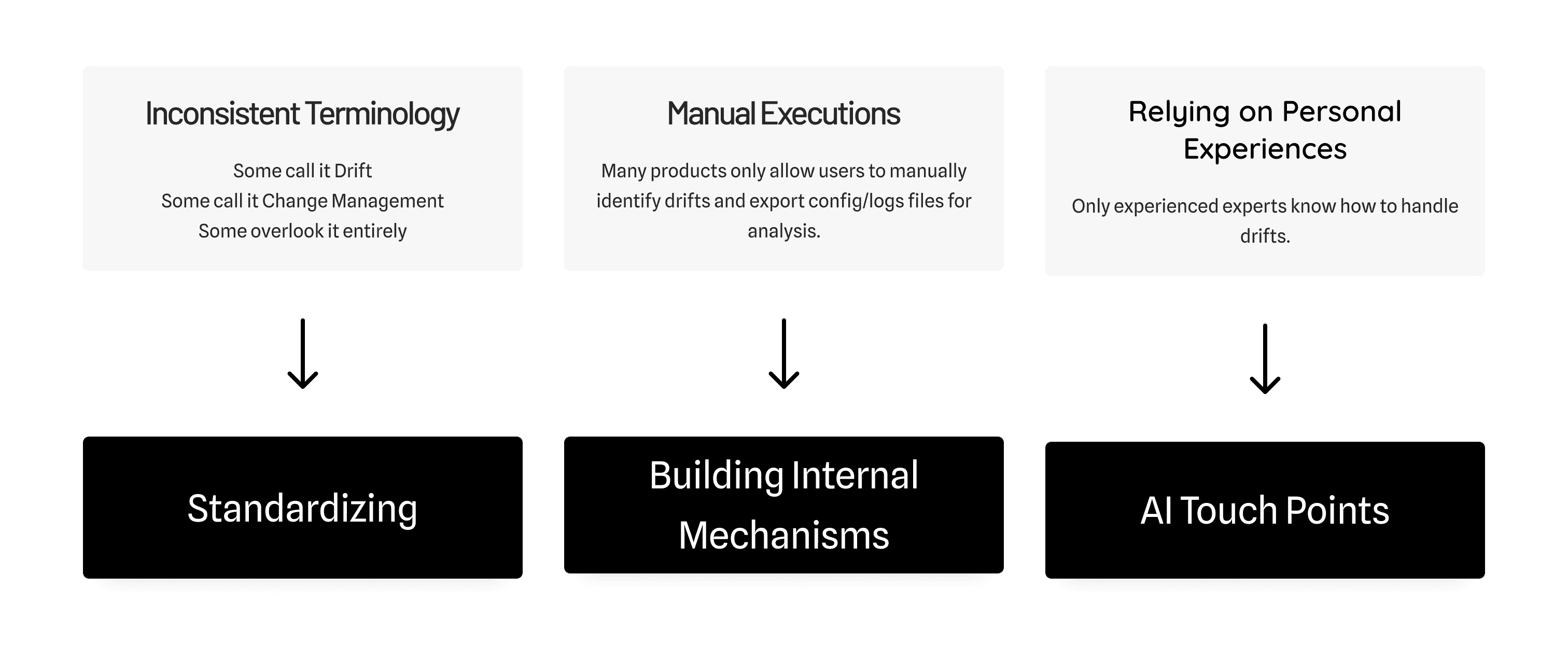 I reached out to other product teams for reference but found each had its own way of handling drifts. That’s when I realized a key gap in our design system: It kept visuals consistent but ignored how users actually completed tasks.